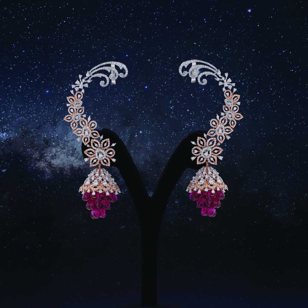 What if your earrings dripped rubies like a cascade of roses? PMJ Jewels make it happen with floral swirls, ruby drops and unapologetic glam.