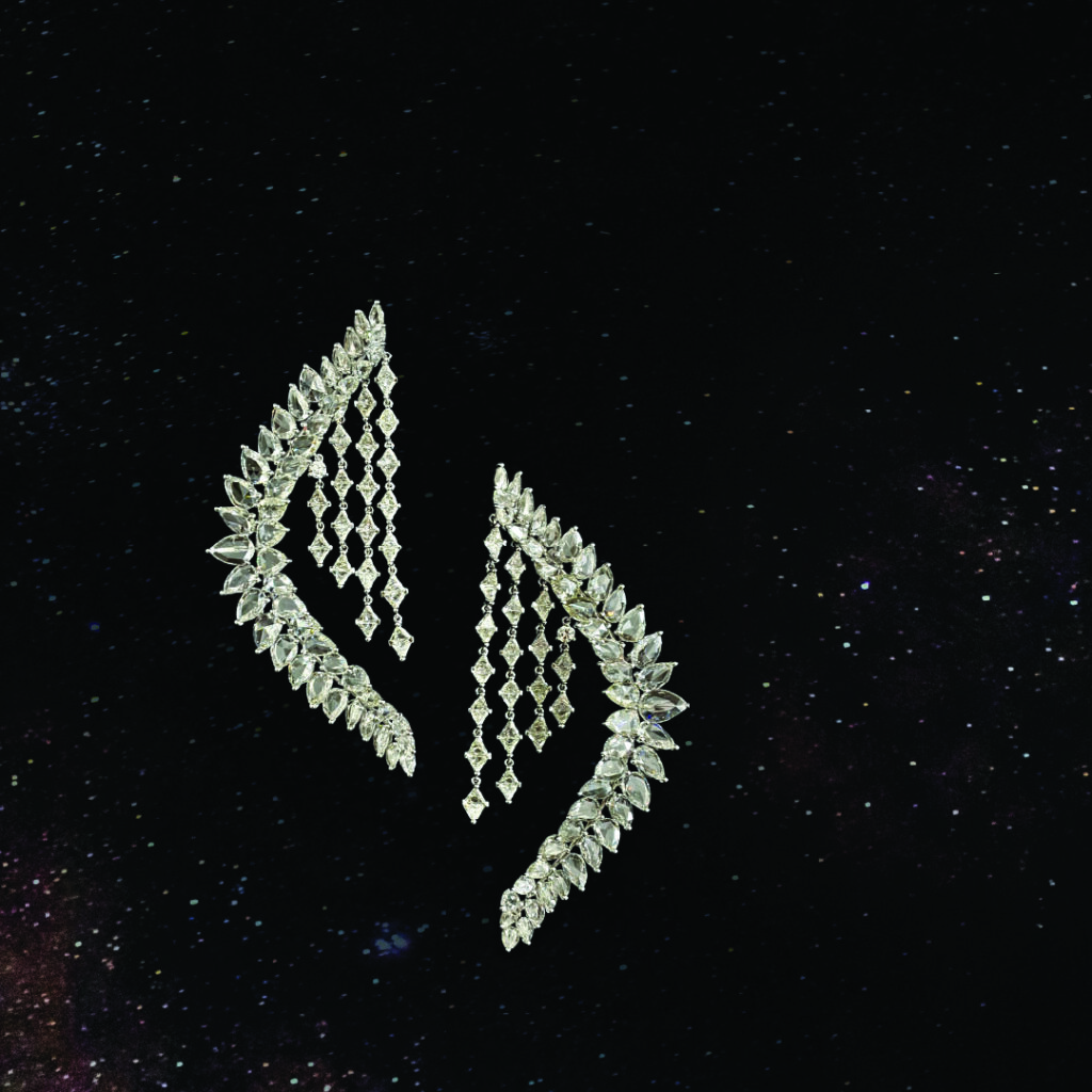 Art Deco meets “don’t talk to me unless it’s important.” GRT Jewellers crafts symmetrical diamond mosaics that belong in a design museum and your party wardrobe. Wear them long for full drama, detach the drops when you’re keeping it sharp.