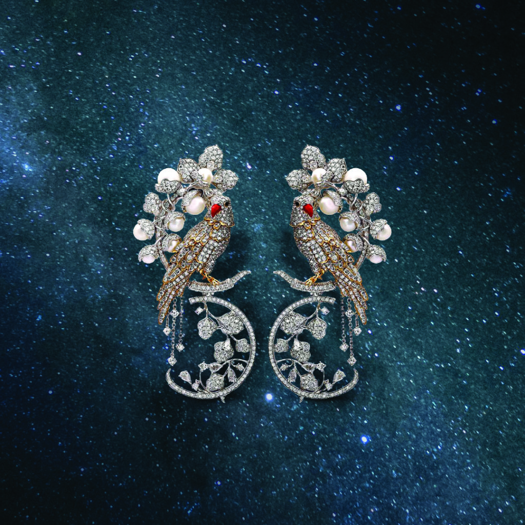 Parrots, pearls and pure attitude. Kirtilal Kalidas Jewellers craft earrings that are convertible chaos. Clip them. Stack them. Flip the vibe. One pair, endless moods.